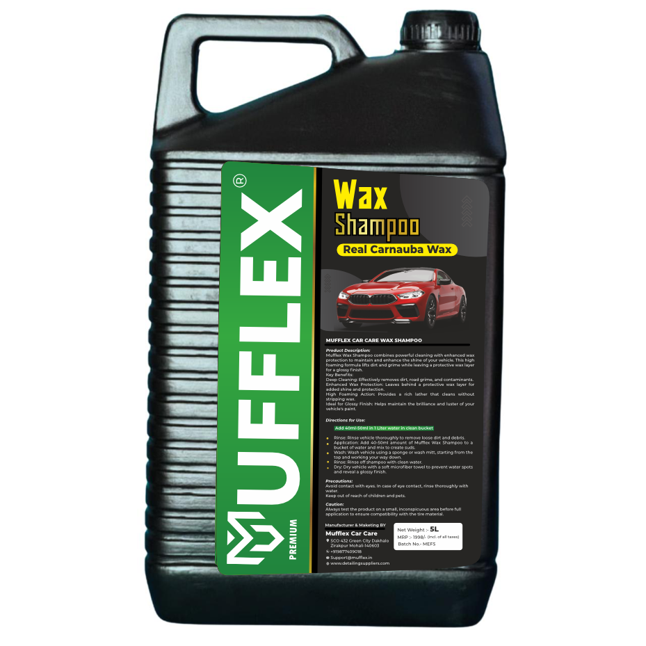 4. **Safe and Gentle:** MUFFLEX Wax and Wash Shampoo Concentrate is pH-balanced and safe for all automotive surfaces, including paint, glass, plastic, and rubber. It won't strip away wax or sealant coatings, ensuring your vehicle's finish remains protected while delivering outstanding cleaning and waxing results.
